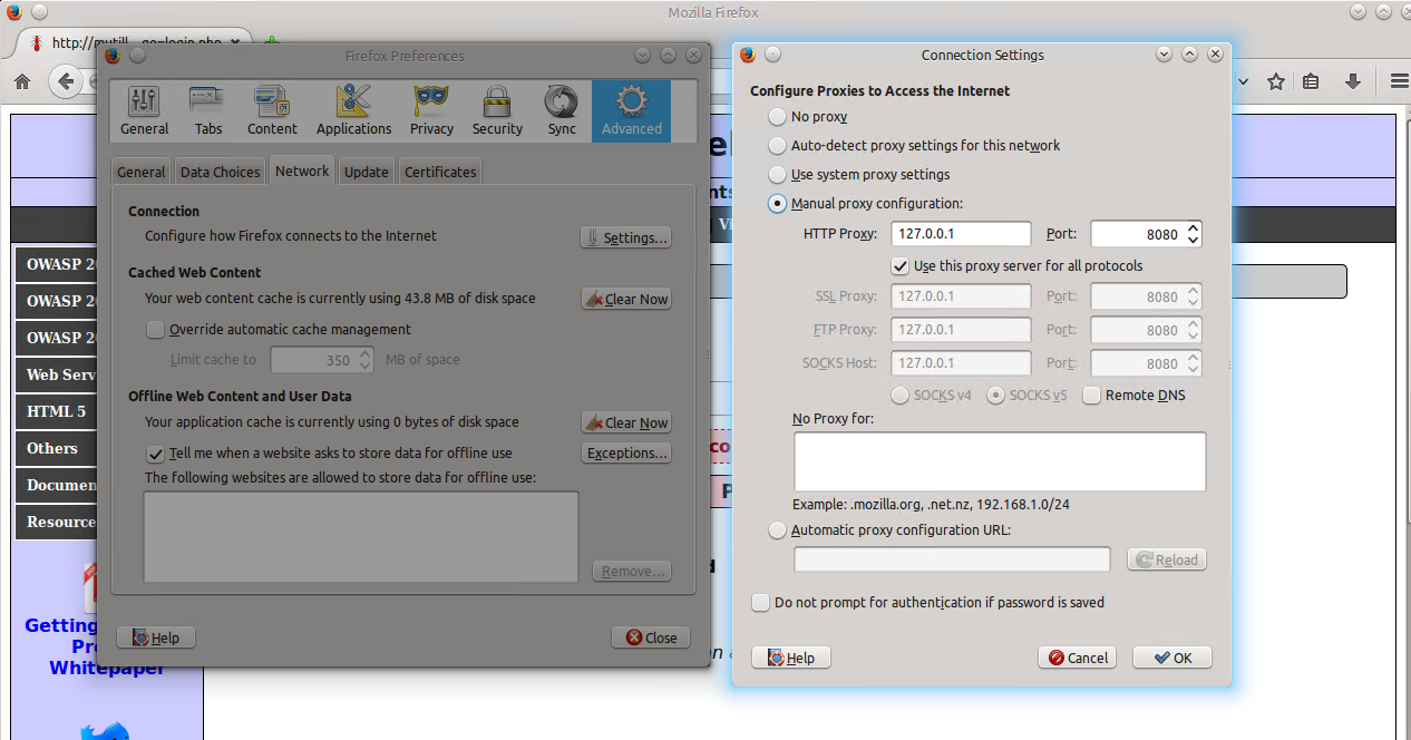 The last step in the installation process is similar to BURP and that is to configure your browser to use ZAP as a proxy. The ZAP team has a nice guide here on how to do this for the most common browsers. I set Firefox with ZAP proxy: